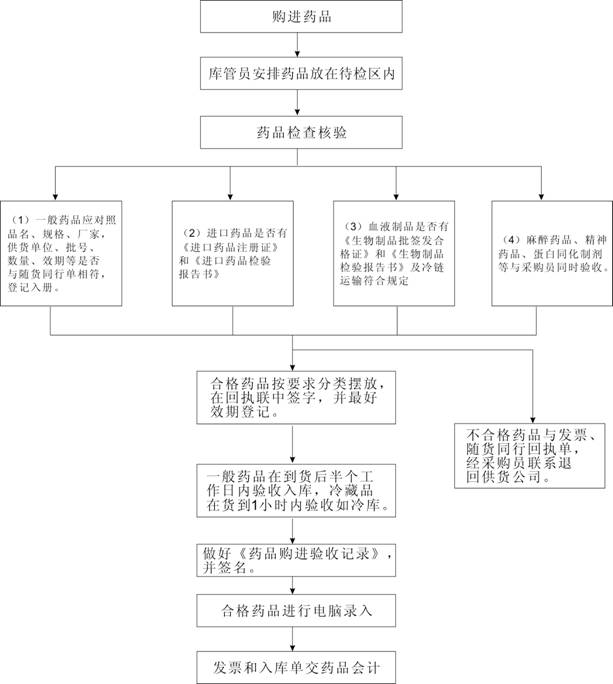 3、对入库药品进行质量验收,发现质量不符合标准、数量短缺等情况,应按规定办理退换或补充手续,并做好入库和发票登记,对到货药品要及时在清单上勾选做标记。